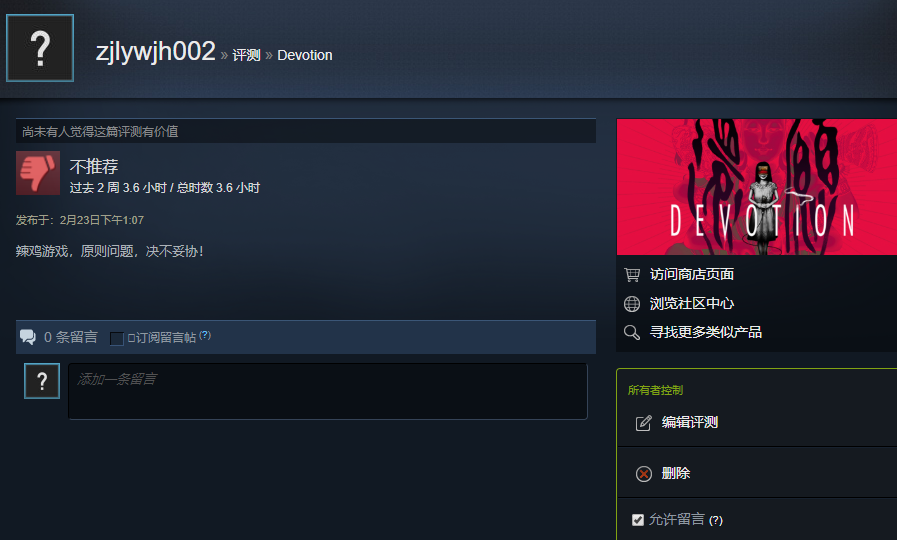 强烈抵制Devotion(还愿)夹带私货辱华行为